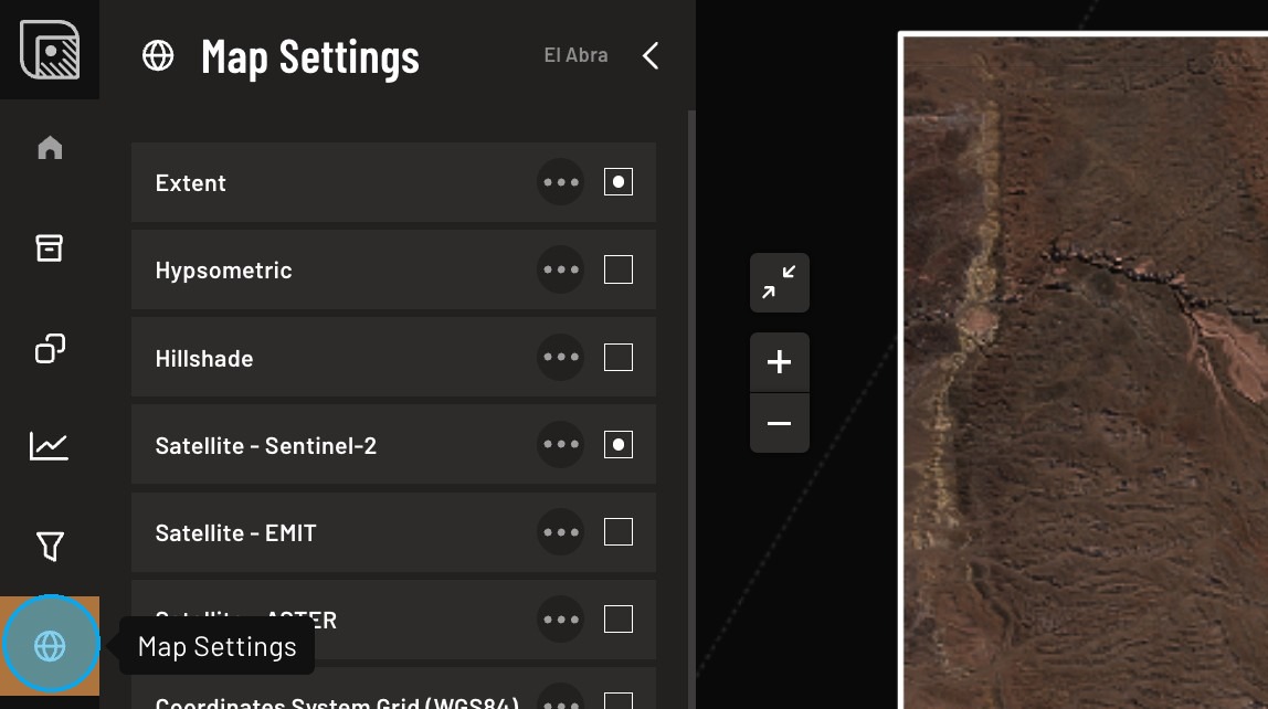You can: - switch basemaps - enable raw imagery - enable hillshade/topography
