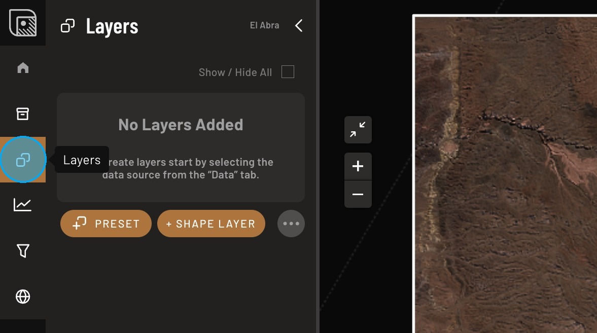 The Layers section controls what is visible on the map.