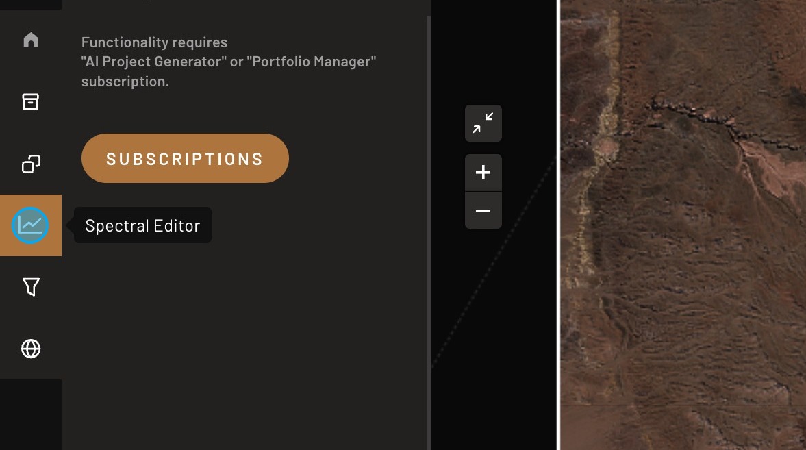 It lets you inspect the selected area, access datasets, analyze pixels, refine results, and control map visualization.