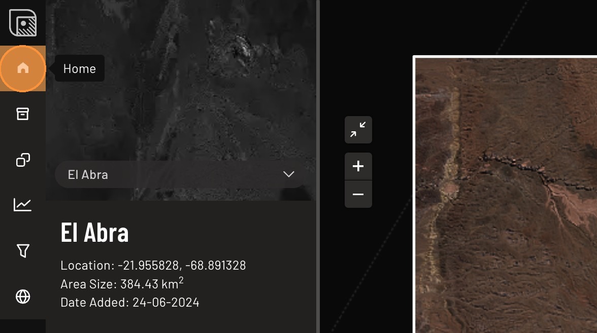 The left sidebar is the main navigation panel in TerraEye. Below is a detailed explanation of each icon and its functionality, along with visual examples.